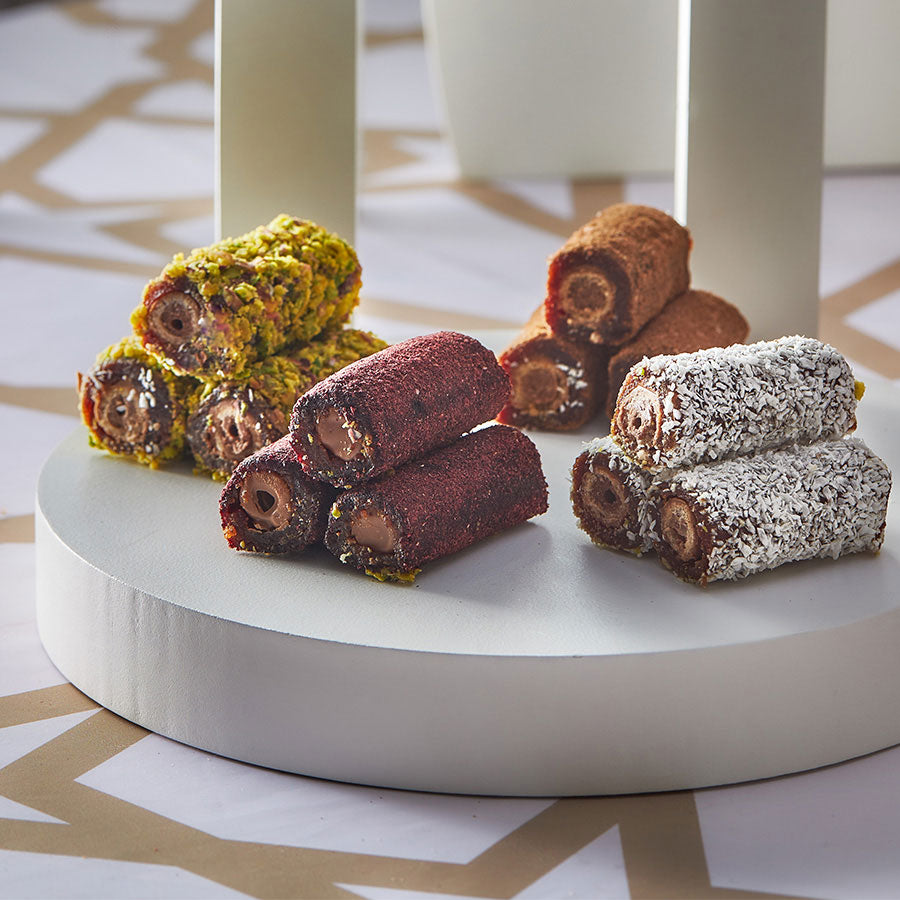 بسكويت كروكانت هو مزيج لذيذ من معجون التمر والكريمة، ملفوف في طبقة وافير مقرمشة ومغطى بقوام الفستق المقرمش أو رقائق جوز الهند أو الكركديه. تقدم هذه الحلوى الفاخرة تباينًا مثاليًا في القوام، حيث يفتح الطبقة الخارجية المقرمشة الطريق إلى حشوة ناعمة ومليئة بالنكهات.
