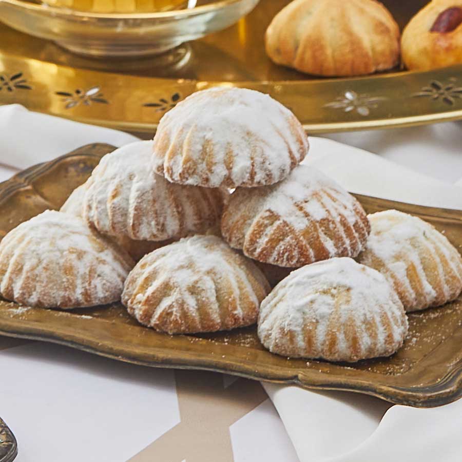 يأخذ معمول السكر لدينا المعمول التقليدي إلى آفاق جديدة مع عجينته الزبدية التي تذوب في فمك وحلاوة التمر المجدول الطبيعية. مغلف بطبقة خفيفة من السكر، يقدم هذا المعمول تباينًا لذيذًا بين العجينة الغنية والطرية والحشوة اللينة الحلوة من التمر.